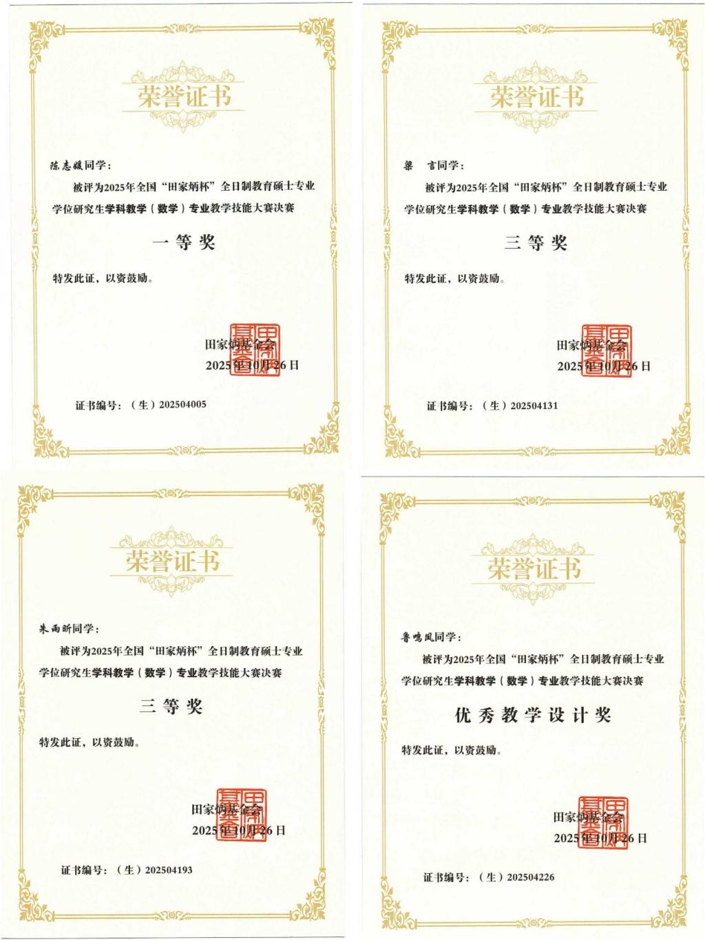 PP电子游戏网站研究生在2025年全国“田家炳杯”全日制教育硕士专业学位研究生学科教学(数学)专业教学技能大赛中获得佳绩