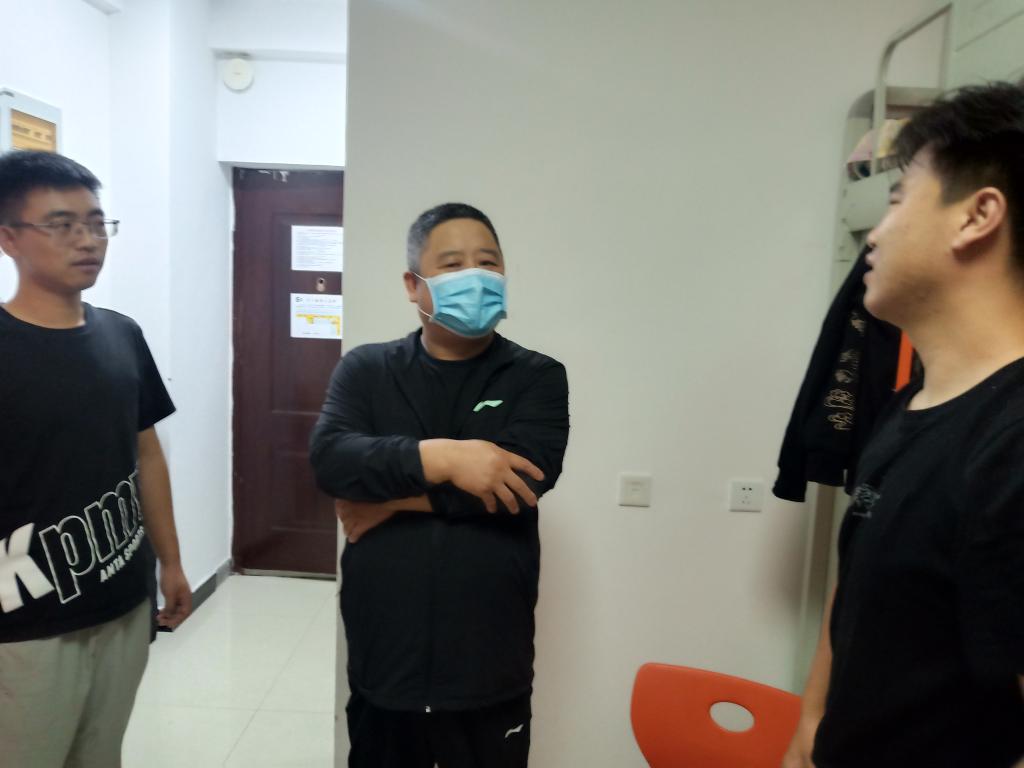 918日晚,院长谢保利、研究生秘书高忠社、李芳到研究生公寓看2022研究生新生,落实学校疫情防控工作要求,了解新生的学习、生活和思想动态,为同学们送上学院的关心和温暖,并对22级研究生新生的到来表示热烈欢迎。