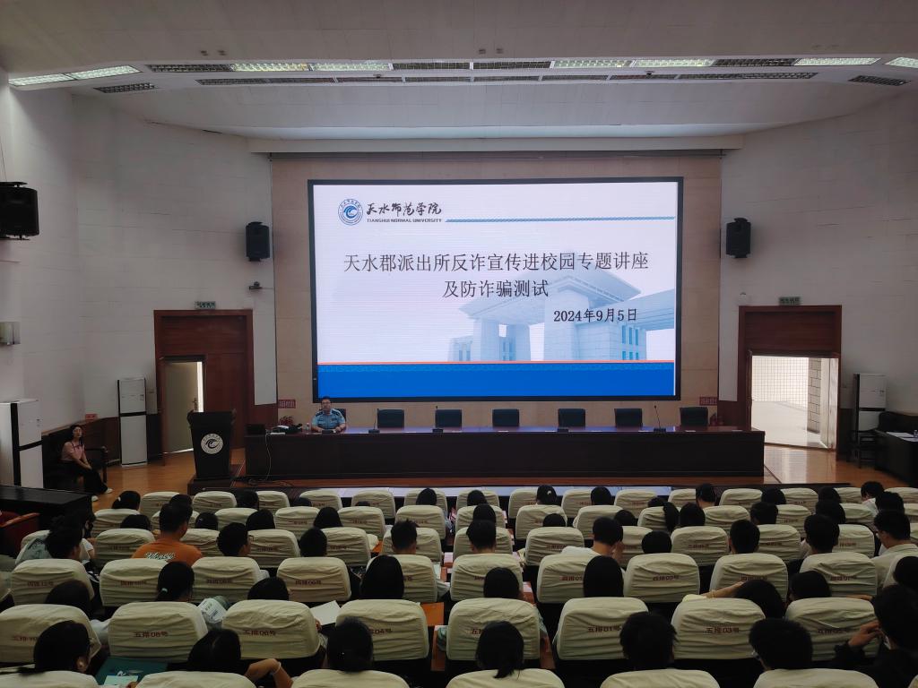 为进一步增强学生对电信网络诈骗的识别应对能力,提高新生的防诈骗意识和能力,2024年9月5日,PP电子游戏网站邀请天水市秦州区天水郡派出所副所长杨逢周警官在2号报告厅开展反诈宣讲进校园专题讲座,学院2024级267名新生参加活动。