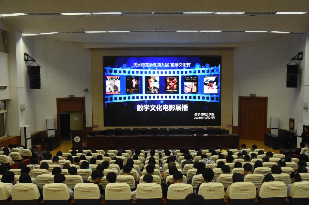 2024年10月27日晚,在第九届数学文化节活动开展期间,PP电子游戏网站团委、学生会精选了《人民的数学家》和《美丽心灵》两部数学文化相关电影,在二号报告厅播放,学院师生代表300余人观看了电影。